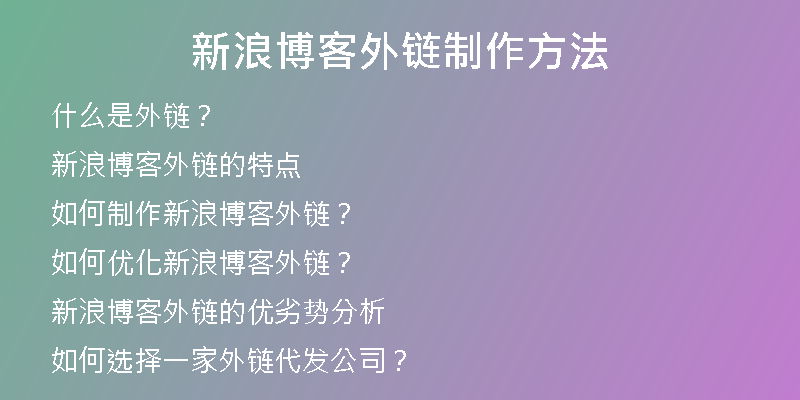 2023-06-15外鏈建設(shè)新浪博客外鏈代發(fā)推廣渠道是什么意思?如果你是一個(gè)SEO編輯,那么你一定知道外鏈對(duì)于網(wǎng)站的重要性。而對(duì)于新浪博客這樣的平臺(tái),外鏈更是非常關(guān)鍵。但是,對(duì)于很多網(wǎng)站主來(lái)說(shuō),獲取高質(zhì)量的新浪博客外鏈代發(fā)渠道并不容···