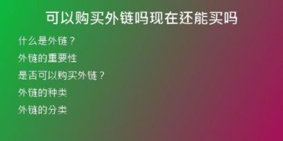 2023-05-15外鏈建設可以購買外鏈嗎現(xiàn)在怎么樣隨著互聯(lián)網(wǎng)的快速發(fā)展,網(wǎng)站優(yōu)化對于網(wǎng)站運營來說至關重要。而外鏈作為一種優(yōu)化手段,在提高網(wǎng)站權重、流量方面具有不可忽視的作用。那么問題來了,可以購買外鏈嗎?現(xiàn)在的外鏈市場環(huán)境怎么···