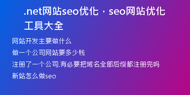 2024-03-18站長百科大家好,今天給各位分享.net網(wǎng)站seo優(yōu)化的一些知識,其中也會對seo網(wǎng)站優(yōu)化工具大全進(jìn)行解釋,文章篇幅可能偏長,如果能碰巧解決你現(xiàn)在面臨的問題,別忘了關(guān)注本站,現(xiàn)在就馬上開始吧!網(wǎng)站開發(fā)主要做什么網(wǎng)站開發(fā)又···